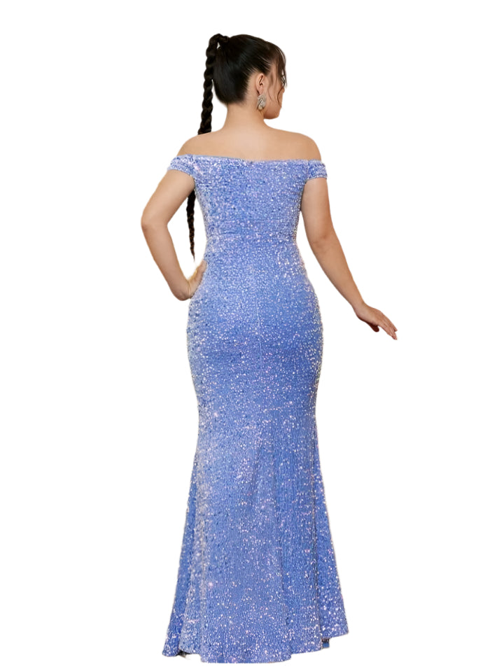 Címke nélküli, csillogó és elegáns estélyi ruha, amely minden különleges alkalomra tökéletes választás. A testhezálló fazon és az off-shoulder kialakítás nőies és kifinomult megjelenést kölcsönöz. A teljes felületen flitterekkel díszített anyag garantálja a ragyogást, míg a combfelsliccelés kényelmet és egy kis extra bájt ad a viselethez. Ideális választás bálokra, esküvőkre vagy gálavacsorákra.