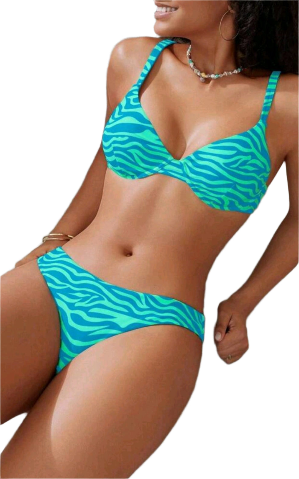 SHE kék-zöld mintás bikini szett