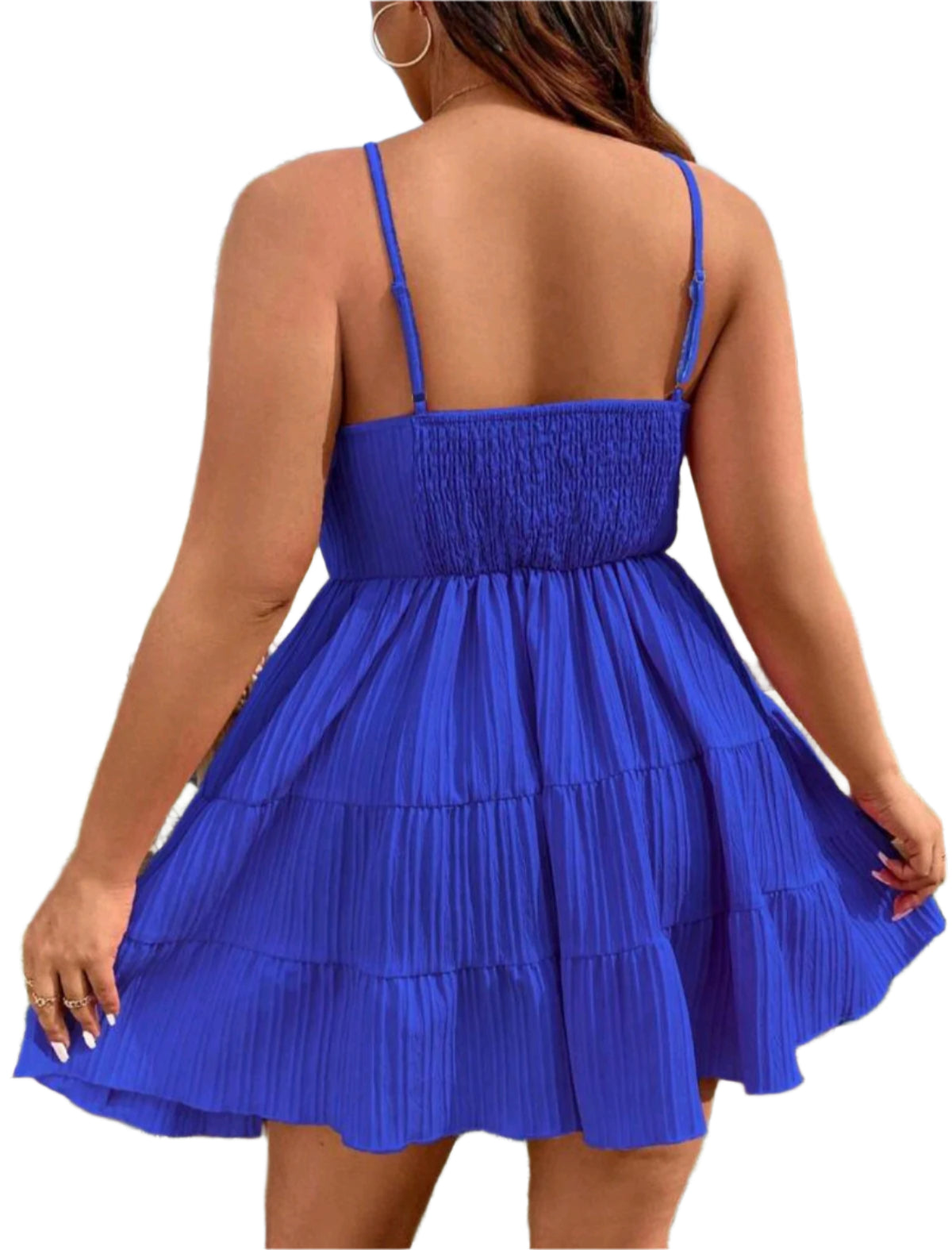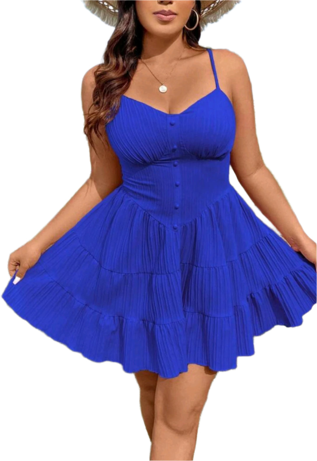 Címke nélküli, légies és nőies pliszírozott pántos ruha, amely kiemeli az alakot. Gombos elülső kialakításával és rétegezett fodros szoknyarészével tökéletes választás nyári sétákhoz, nyaraláshoz vagy könnyed, elegáns megjelenéshez.