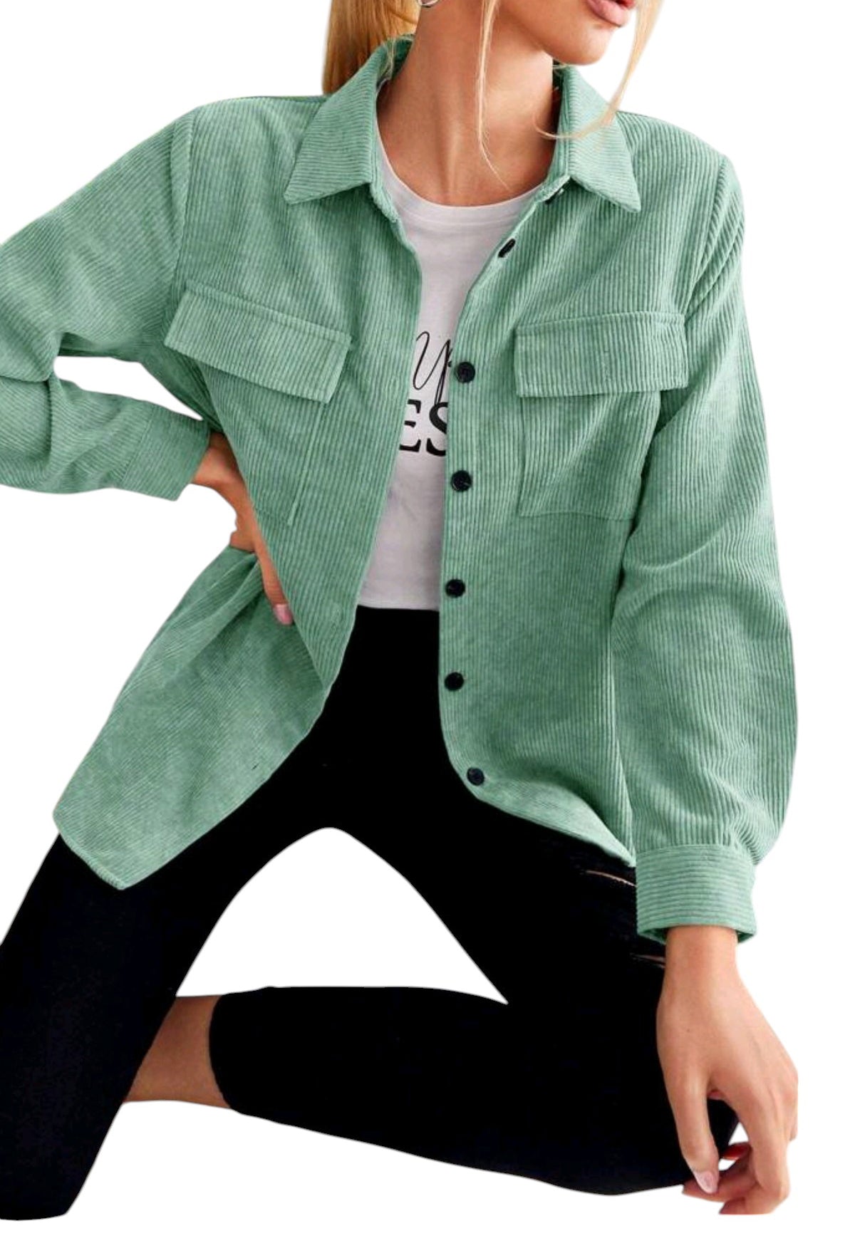Címke nélküli, menta zöld, kordbársony, ing, hosszú ujjú, zsebekkel.