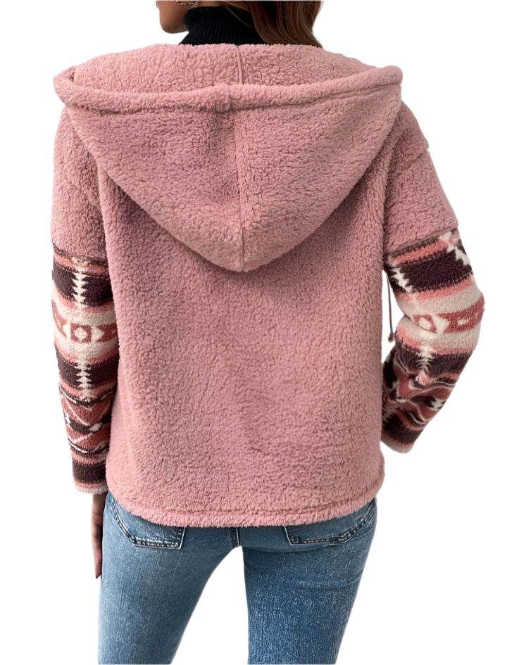 SHE mintás sherpa kapucnis pulóver