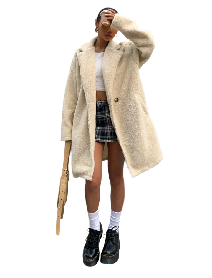 Címke nélküli, puha és meleg oversized fazonú műszőrme kabát. Stílusos és kényelmes viselet hűvös napokra. Egygombos záródás és oldalzsebek teszik még praktikusabbá. Tökéletes választás a divatos, lezser megjelenéshez.