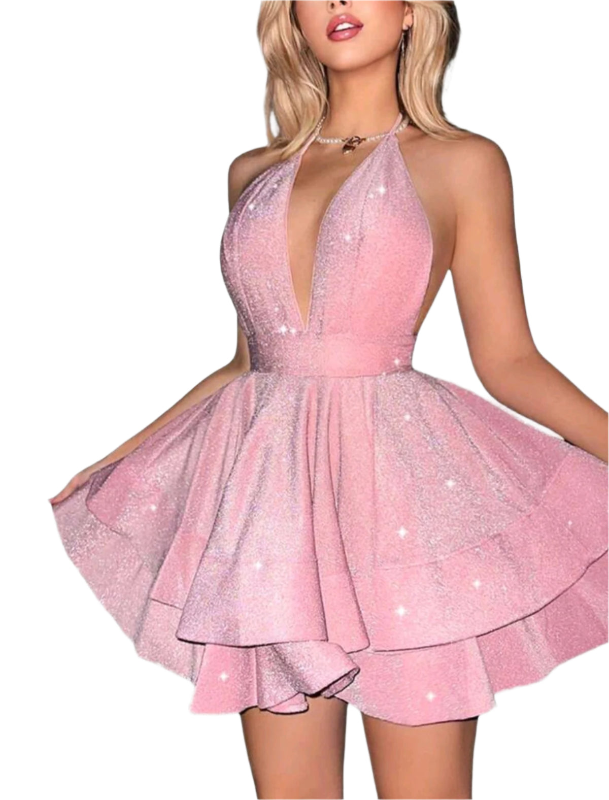 SHE rózsaszín csillogó mélyen dekoltált miniruha