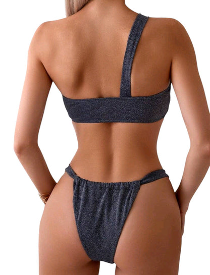 SHE sötétszürke egyvállú kétrészes bikini