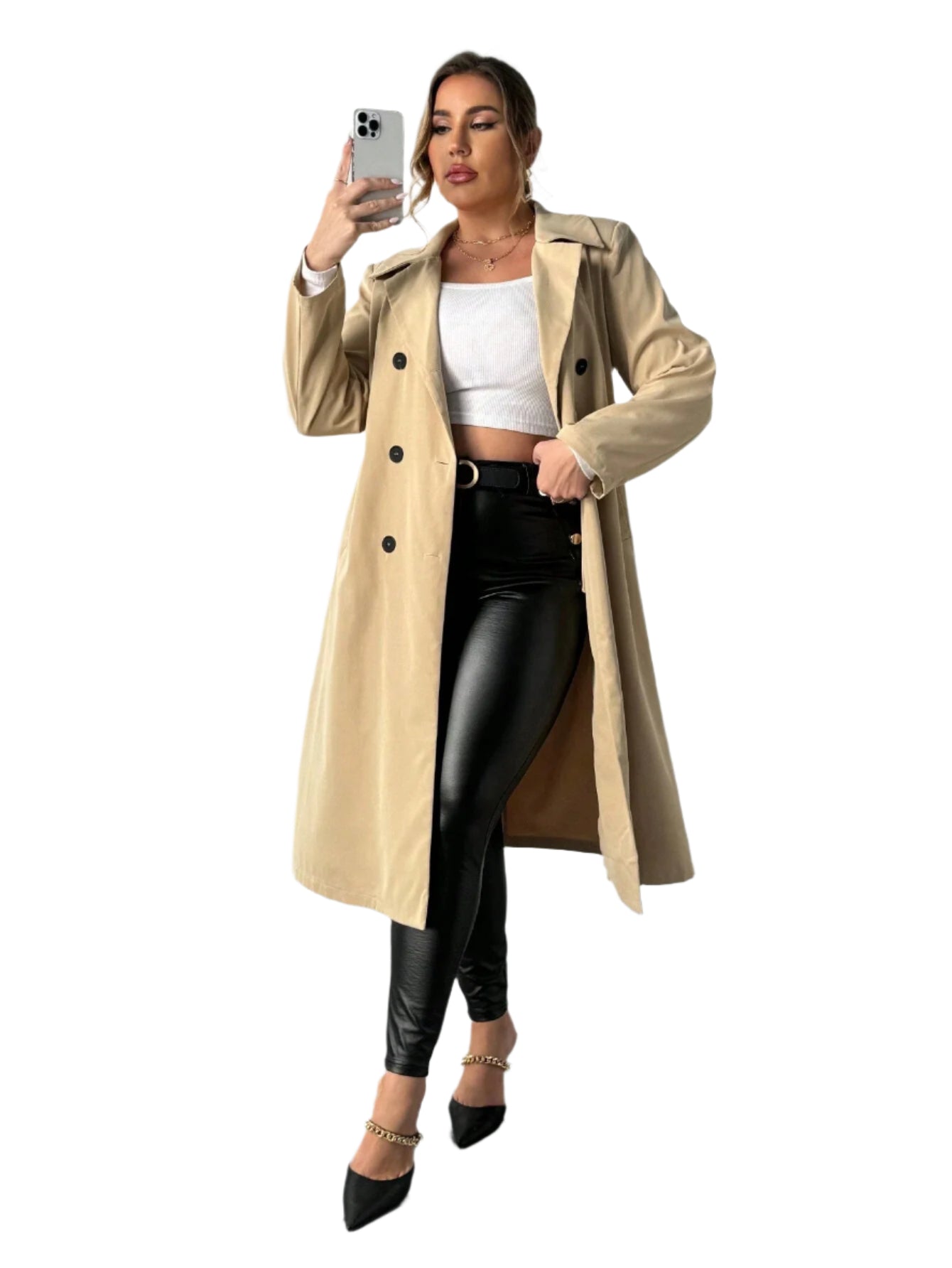 Címke nélküli, elegáns bézs színű ballonkabát, amely tökéletes választás az őszi-tavaszi szezonra. Letisztult szabásvonala és kétsoros gombolása klasszikus megjelenést biztosít, amely könnyen kombinálható elegáns és hétköznapi outfitekkel is. Ideális választás, ha stílusos és praktikus viseletet keresel.
