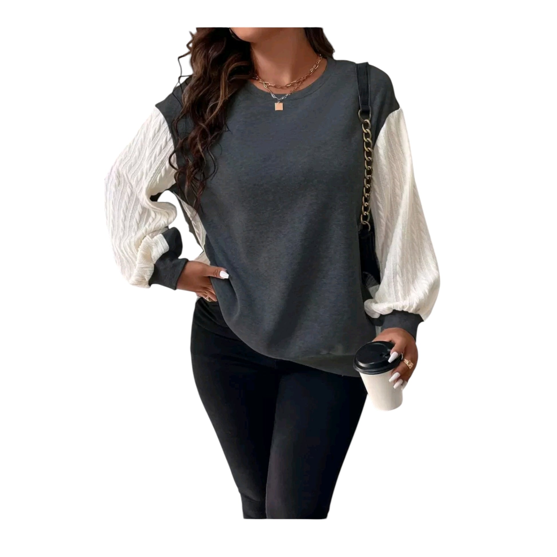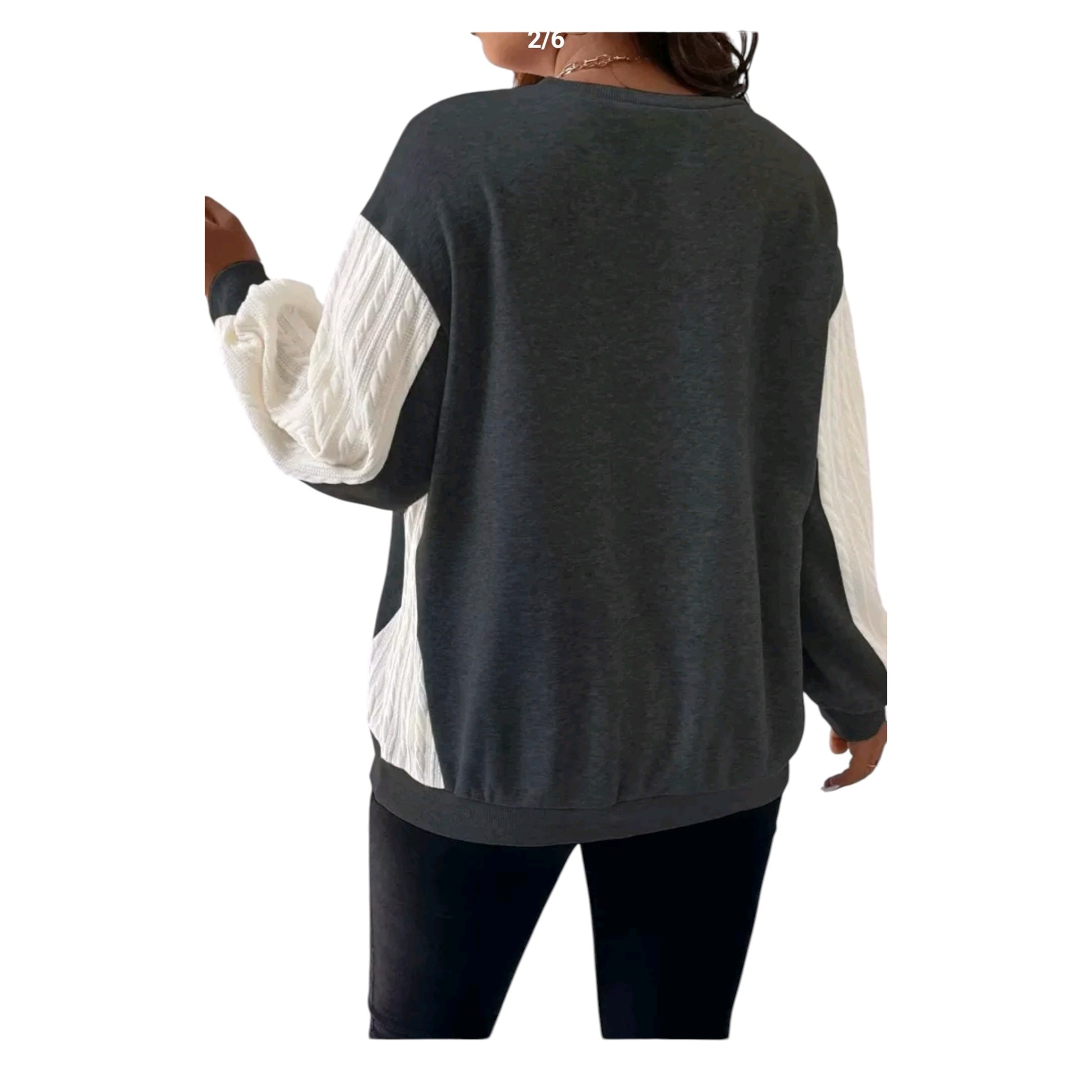Címke nélküli, szürke és fehér, hosszú ujjú, kerek nyakú.