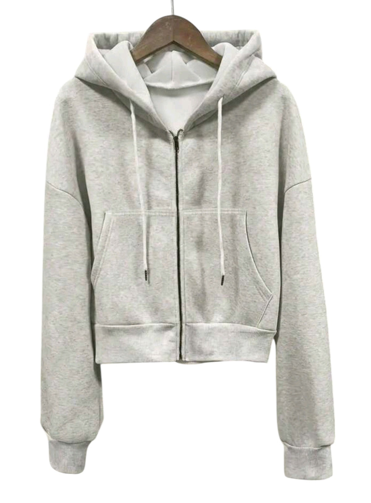Címke nélküli, szürke, pamutkeverék, cipzáros kapucnis pulóver, hosszú ujjú, zsebes.