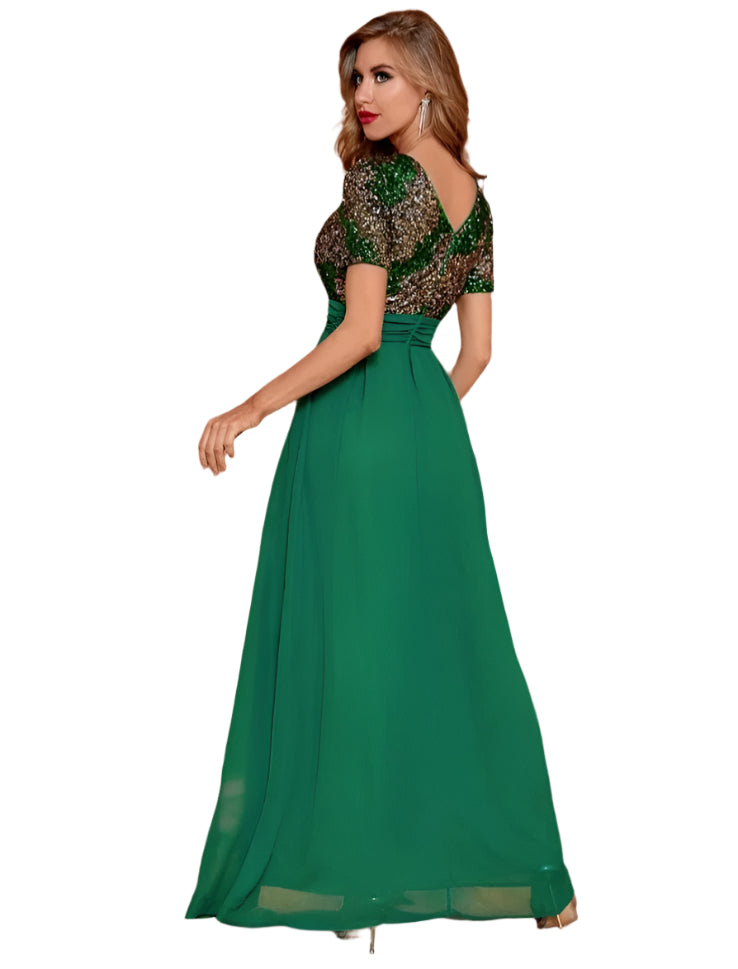 SHE zöld flitteres felsőrészű alkalmi maxi ruha