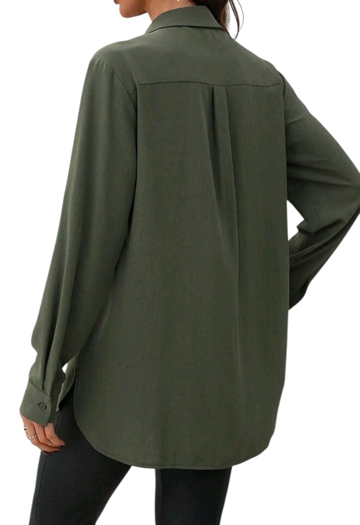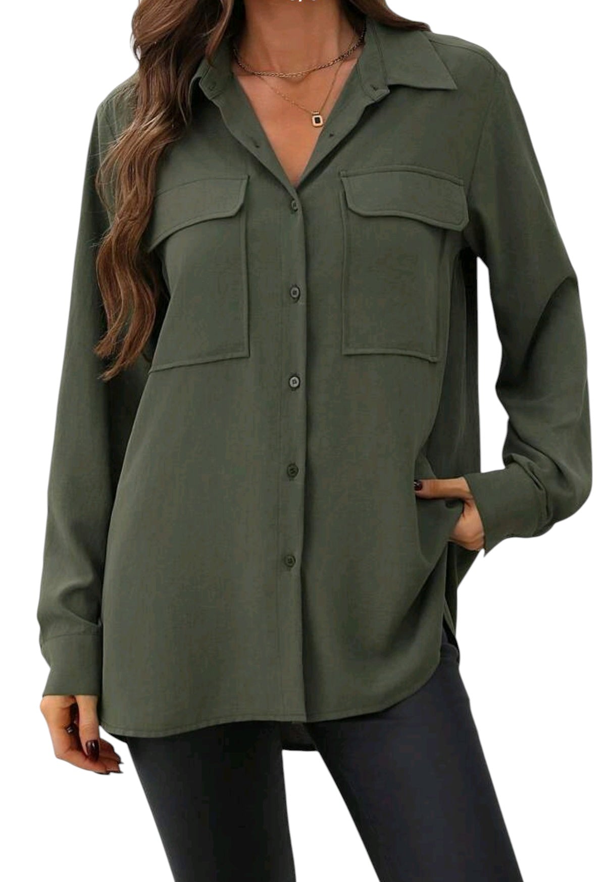 Címke nélküli, zöld, szövet, ing, hosszú ujjú, zsebekkel.